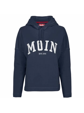 Dieser lässige Kapuzenpullover von Derbe begeistert durch die frische Farbe sowie den prägnanten Schriftzug mit der typisch nordischen Begrüßung „MOIN“. Der kurzgeschnittene Sweater ist mit einer Kapuze mit Tunnelzug und dekorativen Kordeln ausgestattet. Der tolle Material-Mix verspricht Wohlfühl-Momente. Der Pullover ist aus recyceltem Polyester und Bio-Baumwolle hergestellt. Außerdem ist er Vegan und zertifiziert durch PETA.
