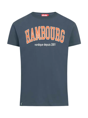 T-Shirt von derbe mit maritimem frankophilen Print und seiner Homage an Hamburg aus Baumwolle & Made in Portugal. – Maritimer Print – Rundhals-Ausschnitt – Label am Saum – Ton-in-Ton-Nähte