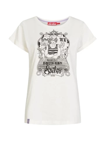 Das Flamé T-Shirt von derbe überzeugt mit dem Seefrau Print aus Baumwolle & Made in Portugal. – Print – Weiter Rundhalsausschnitt – Logo-Badge am Saum – Ton-in-Ton-Nähte