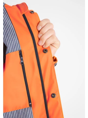 Die Regenjacke von derbe kommt im maritimen Style daher und steht dem Träger bei Wind und Wetter zuverlässig zur Seite. Durch das cleane Design, der legeren Schnittführung und dem Einsatz nachhaltiger Materialien ist die Jacke der ultimative Begleiter. – Kapuze mit Tunnelzug – 2 Klappentaschen (press button), 1 Napoleontasche (Zipper), 1 Innentasche (Zipper) – Ton-in-Ton-Nähte – Label-Badge am Ärmel