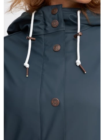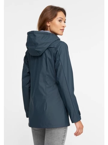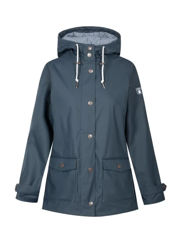 Die klassische Regenjacke von derbe im maritimen Design steht der Trägerin bei Wind und Wetter zuverlässig zur Seite. Das individuelle Design, die feminine Schnittführung und der Einsatz nachhaltiger Materialien machen diese Jacke zu einem Lieblingsartikel von derbe. – Kapuze mit Tunnelzug – 2 aufgesetzte Klappentaschen (press button) – Ton-in-Ton-Nähte – Label-Badge am Ärmel