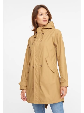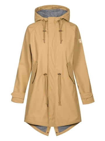 Die lange Regenjacke von derbe kommt im femininem Style daher und steht der Trägerin bei Wind und Wetter zuverlässig zur Seite. Das individuelle Design, die klassische Schnittführung und der Einsatz nachhaltiger Materialien machen diese Jacke zu einem Lieblingsartikel von derbe. – Kapuze mit Tunnelzug – 2 Klappentaschen (press button) – Ton-in-Ton-Nähte – Label-Badge am Ärmel