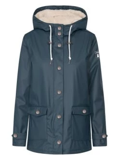Die kurze Regenjacke von derbe kommt im femininen Style daher und steht der Trägerin bei Wind und Wetter zuverlässig zur Seite. Das Design, die Schnittführung und der Einsatz nachhaltiger Materialien machen diese Jacke zu einem neuen Lieblingsartikel von derbe. – Kapuze mit Tunnelzug – Seitliche Eingriffstaschen – Warm gefüttert – Ton-in-Ton-Nähte – Logo-Badge