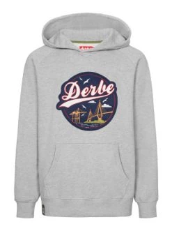 Der Hoody mit RIB-Bündchen von derbe überzeugt mit der maritimen Applikation und den Känguru-Taschen. – Maritime Applikation – Kapuze – Label am Saum – Ton-in-Ton-Nähte – Made in Portugal