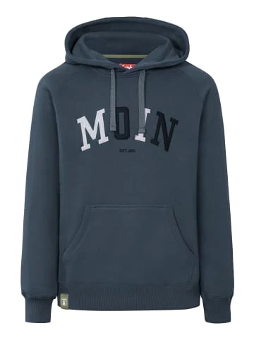 Der Hoody mit RIB-Bündchen von derbe überzeugt mit der maritimen Applikation und den Känguru-Taschen. – Maritime Applikation – Kapuze – Label am Saum – Ton-in-Ton-Nähte – Made in Portugal